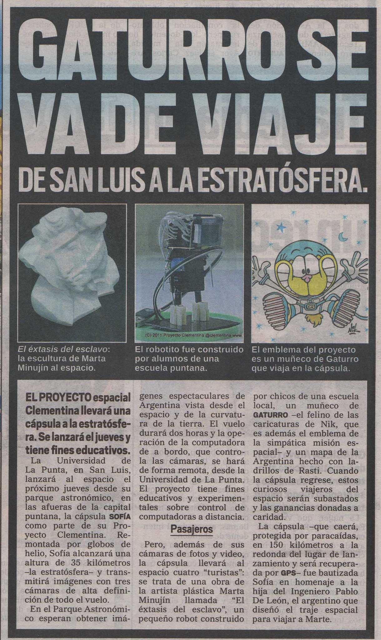 EL PROYECTO espacial Clementina, llevará una cápsula a la estratósfera. Se lanzará el jueves y tiene fines educativos.